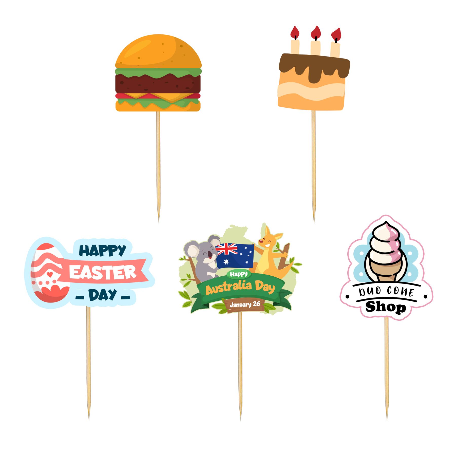 Achieve different decoration goals with our Pack of 100 Custom Coated Paper Toothpicks, crafted from coated paper and toothpick. Personalise the toothpicks through CMYK to showcase your logos or patterns for clear and long-lasting results. Custom shapes can be made within dimensions of 6.5x6.5cm with 10cm toothpick. Ideal for cupcake topper, restaurant services, or event souvenirs, our toothpicks create a brand impression with practical functionality.